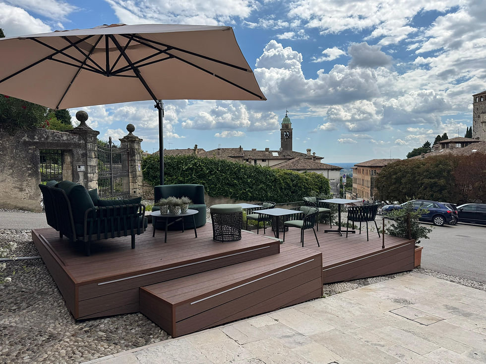 Diamo una nuova vita anche agli spazi esterni grazie ad elementi come questa pedana realizzata per l’Albergo al Sole ad Asolo su disegno di Capriglio Architects e in collaborazione con Gruppo Bortoletto.