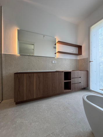 Per questo cliente abbiamo realizzato l’arredamento per il bagno e la camera da letto: mobili su misura pensati al millimetro per rendere i gli spazi belli ed efficienti.
